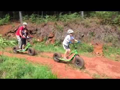 Etter maten var det rett i bilen igjen og en drøy times kjøring tilbake til Kaapsehoop. Der ventet de på oss med en riktig Jeep og merkelige sykler som var konstruert for å kjøre nedover i ulendt terreng. Samuel fikk kjøre mens Sander og Lilli stod mellom beina på de voksne. Turen ned tok ca en time og hele reisen var stort sett uten uhell. Ungene var overbegeistret og foreldrene var lettet (vi passerte noen svinger der det var under 2 meter ut til fjellkanten som fortsatte 50 meter ned til ingenmannsland)!
